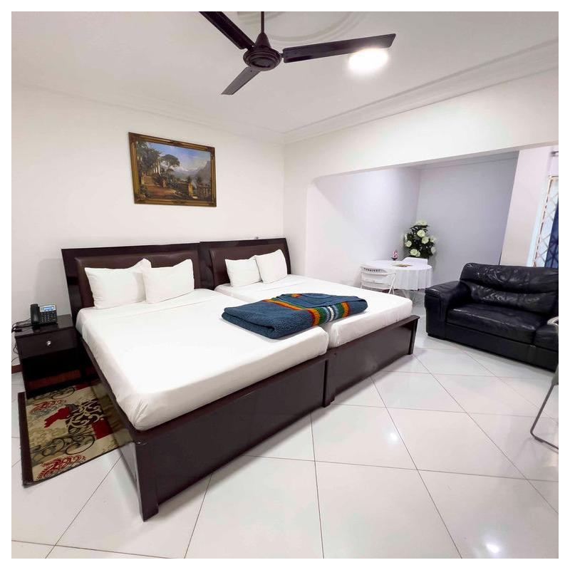 Relax in our tastefully furnished rooms, thoughtfully designed to provide comfort, privacy, and convenience. Each room features a comfortable bed, work-friendly desk, air conditioning, reliable Wi-Fi, flat-screen TV, and a private bathroom with quality toiletries — ensuring a restful stay whether you’re in town for business or leisure.